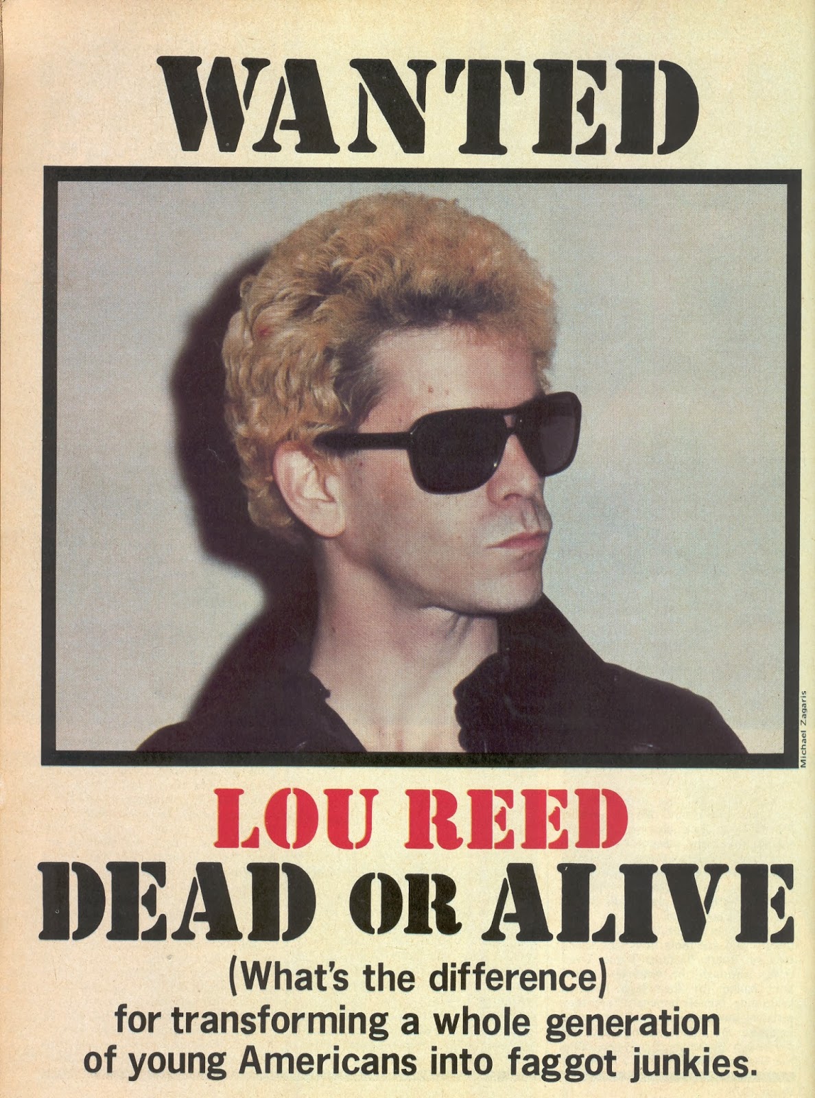 Logo após sua saída da banda Velvet Underground, Lou começou sua carreira solo. Se atirou à psicodelia, ao glam, ao experimentalismo... e ficou famoso por um cartaz criado por "defensores" dos bons modos americanos, com sua foto como se fosse um bandido, sendo acusado de fazer uma geração inteira se tornar homossexual (com uma gíria mais suja) e viciados.