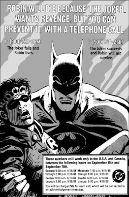 Porém, um anúncio inusitado aconteceu: a DC explicou rasamente um conceito de uma história com o Coringa como vilão, e deu aos leitores a decisão, a ser votada por telefone: